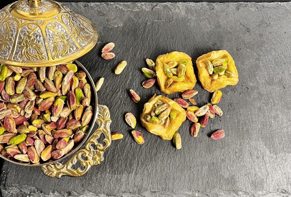 Zutaten: Pistazien, Weizenmehl, Zucker, Butter, Maisstärke.